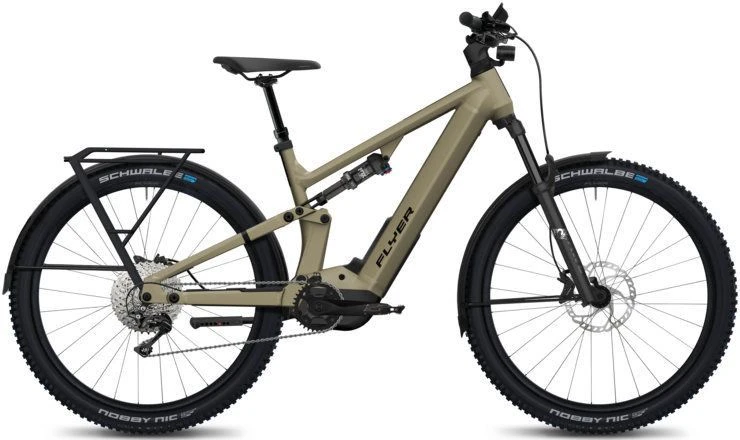 Année modèle: 2023 Type de vélo électrique: VTTAE tout-suspendu, VTTAE XC, VTT électrique Forme du cadre: Unisexe Système d’entraînement: Moteur Panasonic Fabricant: Flyer Capacité de la batterie: 600 Wh – 699 Wh Dérailleur/type de transmission: Dérailleur – chaîne Source d’alimentation: Batterie du VAE Moteur Panasonic: Panasonic GX Ultimate Pro FIT Position de la batterie: Batterie Intube / intégrée Cadre: aluminium, entièrement suspendu, passage des câbles à l’intérieur Fourche: Fox AWL, 140 mm de débattement, 15 x 110 mm Boost Batterie: FLYER FIB-630 36V FIT (630 Wh / 17.5 Ah / 36 V) (S) | FIB-750 (750 Wh / 20.1 Ah / 36 V) (M-XL) ; Range Extender ready Dérailleur: Shimano XT LinkGlide, 11 vitesses, 11-50t Pneus: Schwalbe Nobby Nic E-50 29 x 2.35 (60-622) (M-XL) / 27.5 x 2.35 (60-584) (S) Selle: Selle Royal Essenza+ Tige de selle: FLYER Dropper Post MT214, 100 (S) / 125 (M) / 150 (L-XL) mm travel, 34.9 mm Porte-bagages: FLYER Sport Rack, MonkeyLoad, spring flap intégré Cadenas: Abus Bordo 6000/90 Coloris: Black Shading Satin | Sahara Sand Satin Potence: FLYER CI Potence, 35 x 60 mm, 8°. Ecran: FIT Display Comfort (DSP1-L, écran couleur 3.5″) Béquille latérale: Ursus Mooi 90 Amortisseur: Fox Float DPS, 210 x 55 mm Serrure de batterie: oui Garde-boue: Sunny Wheel 75mm jantes: Alexrims MD30 Assistance: jusqu’à 25 km/h Moteur: Panasonic GX Ultimate Pro FIT Eclairage arrière: FLYER RL-2 Eclairage avant: FLYER HL-2 Pedales: VP 527 Moyeu avant: Formula DC-711, 32h Moyeu arrière: Formula EHL-148S, 32h Taille de la roue: 29″ (M-XL) / 27.5″ (S) Guidon: FLYER Alloy, 740 mm, 7°, 25 mm Poids total autorisé: 150Kg Chargeur: FIT Fast Charger 36V 6A Batterie additionnelle: Range Extender FIT RE-540 36V (540 Wh / 14.7 Ah / 36 V) Frein: Shimano MT520, 203/203 mm