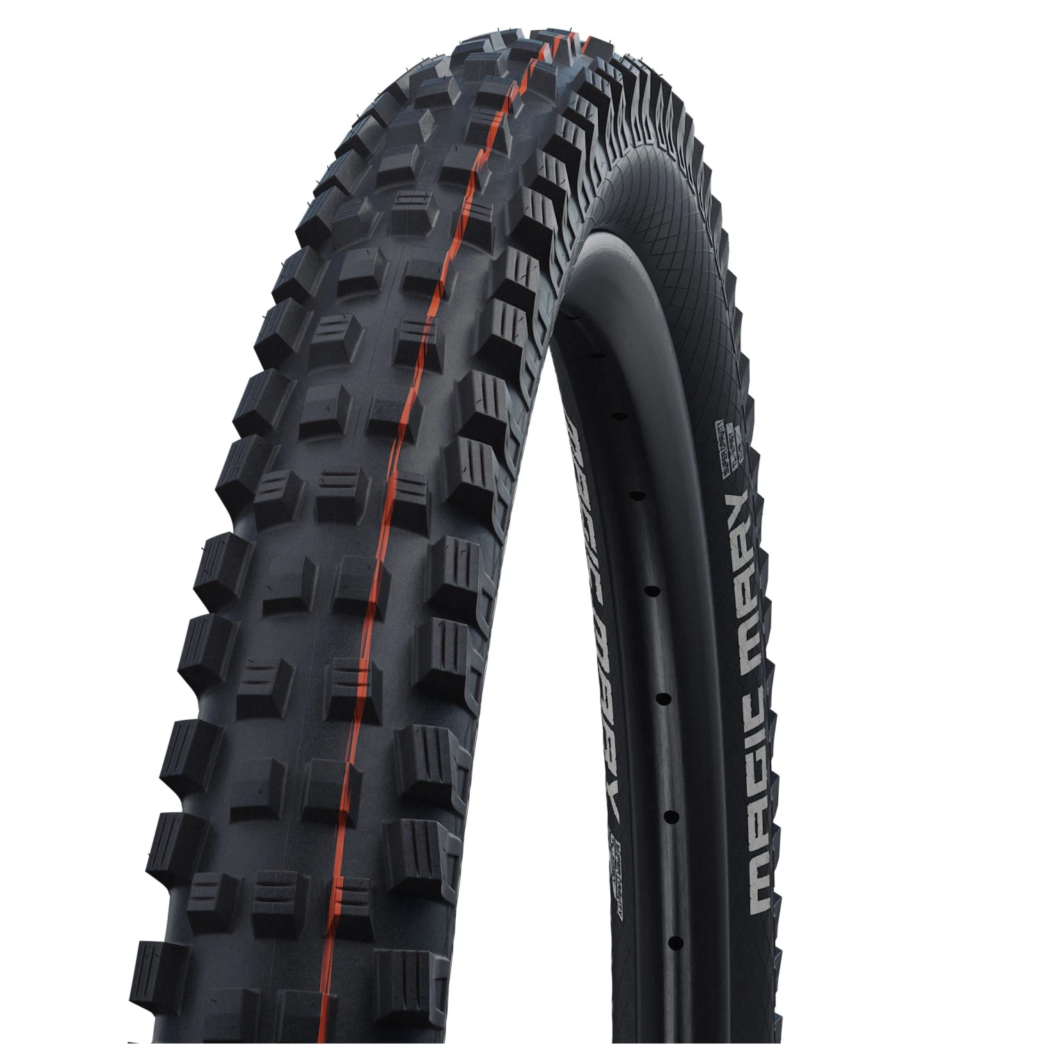 Fabricant: Schwalbe Article: Schwalbe Magic Mary Evolution Pneus Pliables | Super Gravity | Addix Soft | 27.5″ | 29 Contenu de la livraison: 1 x pneu vélo plaint Schwalbe Magic Mary Evolution | Super Gravity | Addix Soft Coloris: Noir Materiau: Addix Soft Homologation: ECE-R75 (vélos électriques jusqu’à 50 km/h) Domaine d’utilisation: eMTB | Downhill | Enduro | Trail Type de montage: Pneus pliants Poids de l’article: 62-584 – env. 1250g | 65-584 – env. 1280g | 62-622 – env. 1320g | 65-622 – env. 1370g (données du fabricant) E.T.R.T.O.: 62-584 | 65-584 | 62-622 | 65-622 Carcasse: 67 EPI Pression : 62-584 – max. 50 PSI | 65-584 – 17-38 PSI | 62-622 – max. 50 PSI | 65-622 – 17-38 PSI charge max.: 62-584 – 115 kg | 65-584 – 115 kg | 62-622 – 125 kg | 65-622 – 115 kg